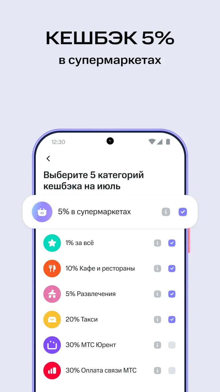 Одна из самых сильных сторон МТС Деньги — это гибкая и щедрая программа кешбэка. Вы сами решаете, в каких категориях получать повышенный возврат денег каждый месяц. Это настоящая персонализация выгоды!